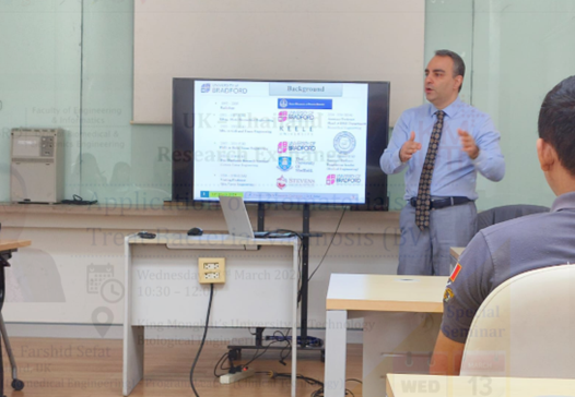 Farshid Sefat is an Associate Professor and a Programme Leader in Biomedical and Electronic Engineering where he primarily focuses on tissue engineering. Dr Farshid’s visit was preceded by a visit to laboratories and facilities at University of Bradford from Dr Parichart Naruphontjirakiul which was funded by the WTUN Exchange Programme in 2021/22. In the previous visit, research commonalities were explored and the foundation for this second visit was established.